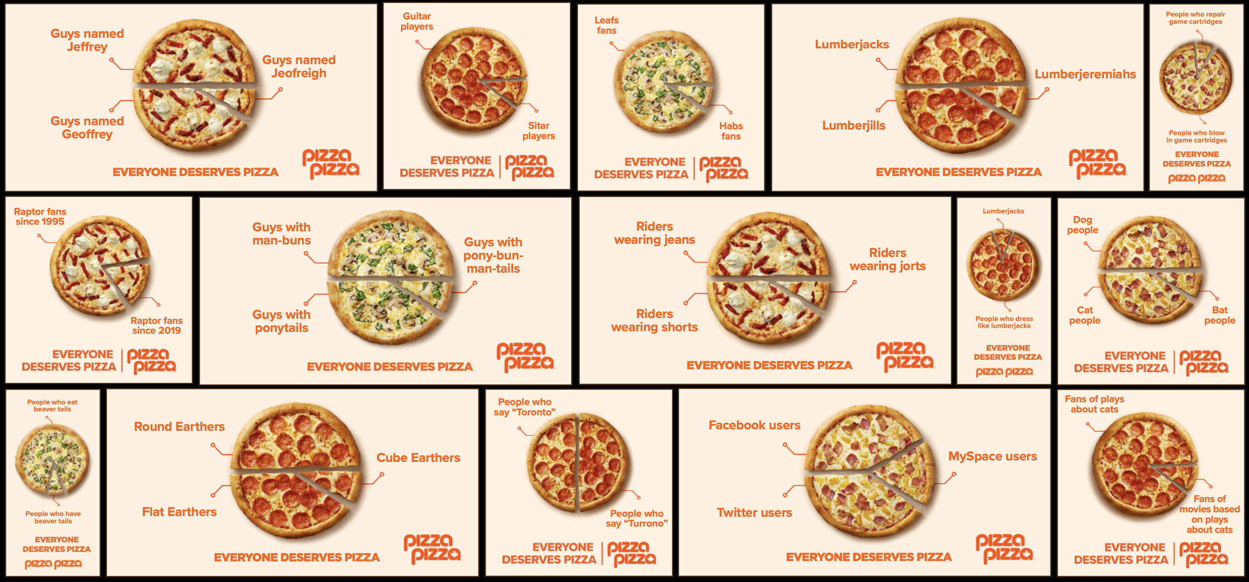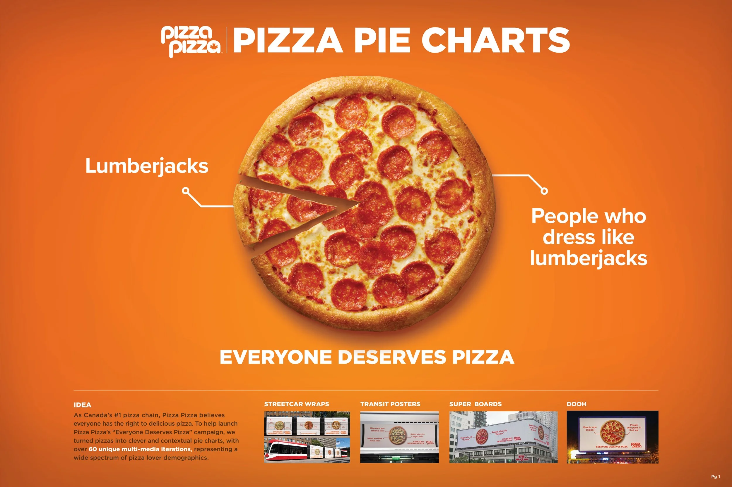 To launch our "Everyone Deserves Pizza" campaign, we produced over 60 unique Pizza Pie Charts, targeting a wide spectrum of pizza lover demographics.